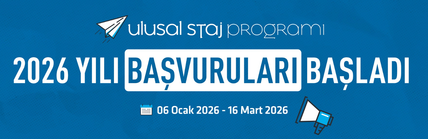 - “Ulusal Staj Programı” 2024 yılı öğrenci başvuruları 28 Aralık 2023 itibarıyla başlamış olup 10 Mart 2024 tarihine kadar devam edecektir.